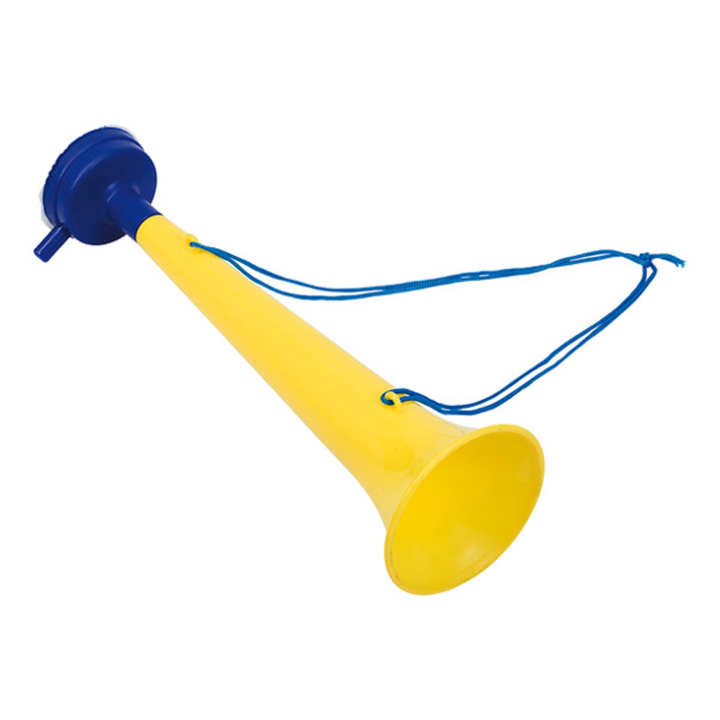Tutan för dig som vill höras utan att skrika dig hes på kuppen. Blå/gul Sverigetuta som du blåser i på ena sidan och ut kommer ett högt ljud (c:a 95 dBL) på andra sidan. Levereras med smidigt band så